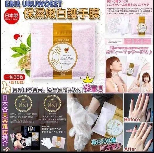 日本EBIS保濕手膜 (一包36枚包)<----預購:預計一星期到貨